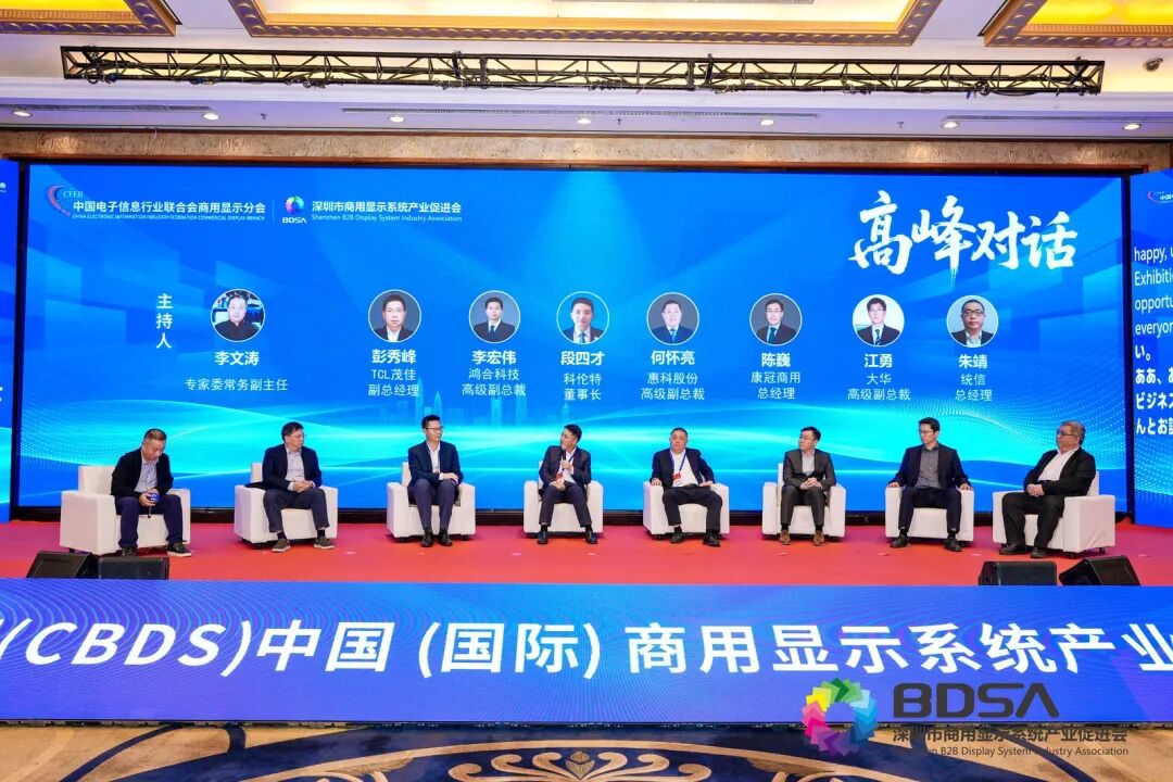最后,峰会压轴—高峰对话环节正式开启,由商显产促会专家委常务副主任李文涛主持,特邀7家企业代表围绕“产业全球化、AI与信创”两大核心议题展开探讨。